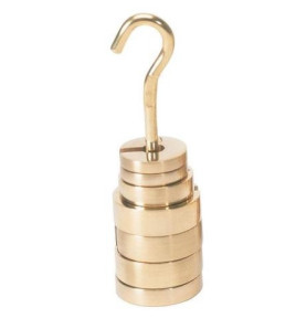 Súprava mosadzných drážkových závaží s držiakom: 2x5g, 1x10g, 3x20g. Celková hmotnosť 100g. Držiak: 22 mm, hmotnosť 20g.