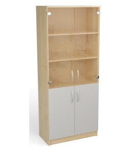 Skriňa vysoká policová so sklenenými a plnými dvierkami 195 x 80 x 40cm.