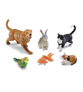 Sada obsahuje 6 zvieratiek - mačka, zajac, pes, morča, rybka, andulka. Pes meria 20x15cm. Vek 2+.