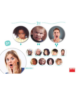 Obrázky na skladanie, rozmer 30 x 30 cm, na ktorých sú znázornené rôzne výrazy tváre. Balenie obsahuje 15ks.