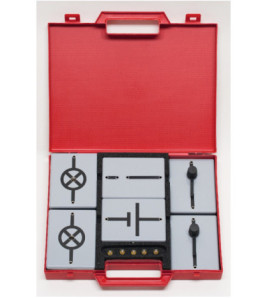 Modulová sada obsahuje 6 podstavcov so základnými elektrickými elementmi a niektoré príslušenstvo na realizáciu 12...