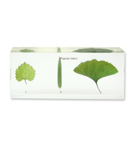 Model - Žilnatina listov rastlín - 3 typy v akrylátovom kvádri.