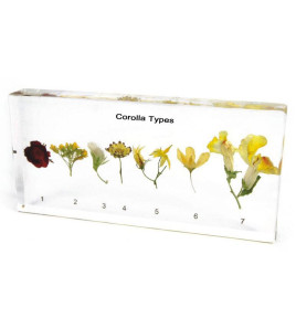 Model znázorňujúci typy okvetia, akrylátový hranol, rozmer: 164x78x20 mm.