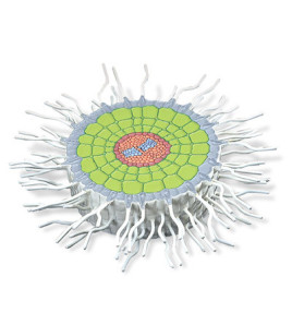 Model ukazuje absorpčné oblasti dvojkličných rastlín - koreňa horčice bielej.