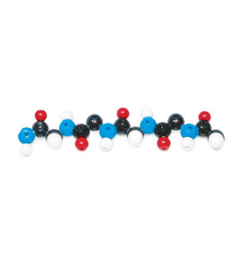 Biochémia - model bielkovín, polypeptidový reťazec, 5 peptidových jednotiek.
