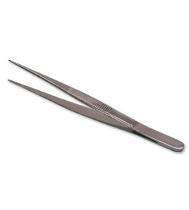 Kliešte z nerezovej ocele, s rovným a vrúbkovaným hrotom pre lepšie uchopenie tkaniva.