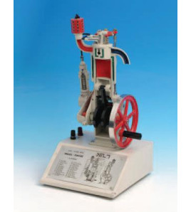 Modely v reze na podstavci ilustrujú funkciie piestového motora, ovládanie ventilov a vstrekovanie paliva. Prierez...
