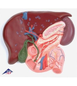 Model zobrazuje pečeň, žlčník, pankreas, dvanástorník, cievy, žlčovod a vonkajšie žlčové kanáliky.