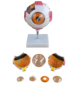 Jednotlivé časti modelu oka sú odnímateľné na zobrazenie štruktúry. 6x zväčšenie, veľkosť: 16 x 13 x 16 cm.
