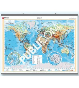 Aktuálna politická mapa sveta 100x140cm vhodná na trvalé vyvesenie v triede, na školskej chodbe či v kancelárii.