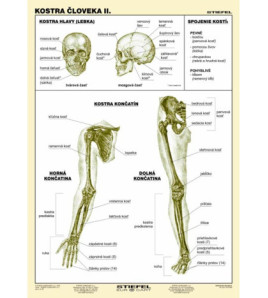 II. diel obsahuje popis hlavných kostí: kostry lebky, kostry horných končatín, kostry dolných končatín a prehľadnú...