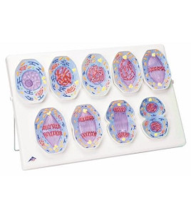 Model ukazuje 9 štádií mitózy na príklade typickej bunky cicavca v cca 10 000 násobnom zväčšení.
