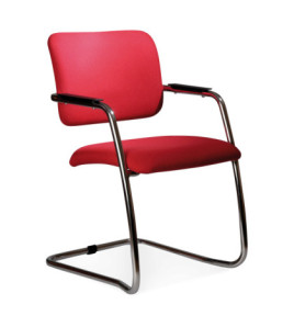 Konferenčná čalúnená stolička vrátane podrúčiek, oceľový chromovaný rám lyžinového typu.