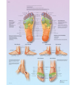 Obraz farebne zobrazuje všetky dôležité reflexné zóny nôh a referenčné body. Veľkosť 50x67cm, laminovaný, UV odolný...