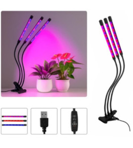 Osvetľovacie zariadenie pre pokusy s fotosyntézou: LED lampa pre rast rastlín, 3-ramenná na klip.