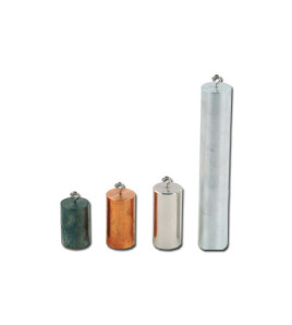 Kovový valec s hákom, pre pokusy s hustotou. Materiál: Al/Fe/Cu/Pb, hmotnosť: po 200g, D= 25 mm, sada 4 kusov.
