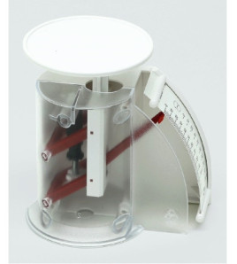 Pružinové váhy v čiastočne priehľadnom plastovom puzdre s jasne viditeľným mechanizmom váženia.