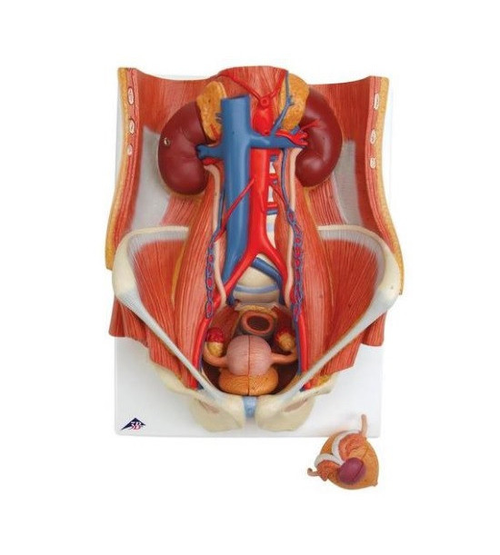 Obojpohlavný model vylučovacieho systému obsahuje jednotlivé (očíslované) časti: -štruktúru brušnej dutiny, -veľkú a malú panvu s kosťami a svalmi, -dolnú dutú žilu, -aortu, -horné močové cesty, -konečník, -obličky s nadobličkami. Predná polovica jednej obličky je odnímateľná. Mužská časť (močový mechúr a prostata, predná a zadná polovica) a ženská časť (močový mechúr, maternica a vaječníky, 2 laterálne polovice) sú vzájomne zameniteľné.