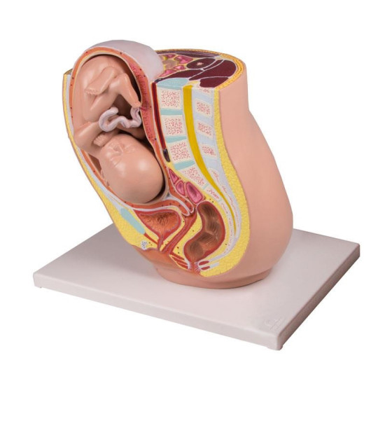 Panva tehotnej ženy s plodom v 32. týždni, 2-dielny model. Tento model v životnej veľkosti zobrazuje ženskú ľudskú panvu s plodom v 32. týždni tehotenstva (Všeobecne hmotnosť plodu v tomto období je približne 1700 g a jeho dĺžka je približne 42 cm). Plod je v normálnej polohe. Model znázorňuje polohu plodu a vnútorných orgánov počas normálneho tehotenstva. Sú zobrazené všetky anatomické detaily panvy a plodu. Plod je vyberateľný. Namontované na podstavci.