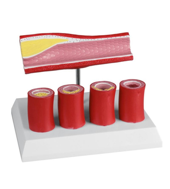 Ateroskleróza je ochorenie tepien, pri ktorom sa do poškodenej cievnej steny ukladajú tukové látky, najmä cholesterol. Priemer cievy sa zužuje, čo obmedzuje prietok krvi. Model zobrazuje pozdĺžny rez ľudskou tepnou. Súčasťou modelu sú prierezy artériami, ktoré zobrazujú postupné ukladanie sklerotického plaku na cievnu stenu. Rozmery: 14 x 18 x 13 cm, hmotnosť: 0,4 kg. Vďaka aplikácii Augmented Anatomy v kombinácii s týmto kvalitným anatomickým modelom je učenie jednoduchšie a efektívnejšie. Táto aplikácia automaticky rozpoznáva anatomické modely EZ a zobrazuje nomenklatúru v rozšírenej realite. Aplikácia rozšírenej anatómie funguje na všetkých bežných smartfónoch alebo tabletoch (verzia EN, DE).