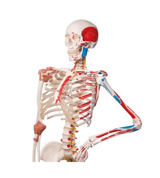 Plne ohybný model kostry s farebným označením svalov a číslovaním vyše 600 detailov. Po sklonení zostane Sam v tejto polohe, aby ukázal správne a nesprávne polohy, ako aj akékoľvek patologické zlomy. Všetky pohyby lebky sa zobrazia na kĺboch hlavy. Na kostre vyčnievajú chrbtové nervy a vertebrálne artérie, ako aj dorzálna hernia medzi 3. a 4. bedrovým stavcom. Kostra je na stabilnom kovovom stojane s 5 kolieskami. Rozmer: 176,5 cm. Hmotnosť: 10,4 kg.
