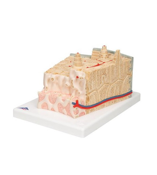 Veľmi detailný trojrozmerný model znázorňuje prierez lamelovej kosti, poukazuje na typickú štruktúru dutej kosti zväčšenej 80x. Rôzne plochy sú znázornené v priečnom a pozdĺžnom reze cez všetky úrovne kosti, ako aj 2-rovinný prierez cez vnútornú štruktúru kostnej drene. Dodávaný na podstavci.