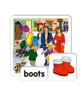 Ďalší variant klasickej pomôcky v novom atraktívnom šate. Potrebujete zamestnať neposedných žiakov, hravou formou utvrdiť alebo rýchlo preskúšať znalosti učiva? Dominový rýchlotest obsahuje v jednom balení 5 samostatných sád tak, aby mohli pracovať súčasne piati žiaci alebo päť skupiniek. Každá sada obsahuje 10 kartičiek so slovnou zásobou z daného okruhu. Žiak začne položením prvej kartičky. K obrázku, ktorý je na nej uvedený, vyhľadá slovíčko na niektorej z ostatných kartičiek. Takto pokračuje až kým neusporiada všetky kartičky svojej farebnej skupiny. Pri správnom zložení všetkych kartičiek musí obrázok na poslednej nadväzovať na slovíčko prvej.Materiál : pevný kartón, hr. 2mm Obsah dodávky : 50 laminovaných kartičiek z 2mm kartónu (5 x 10 príkladov - 7,5x2,5cm/1kartička) dodávané v kartónovej krabičke