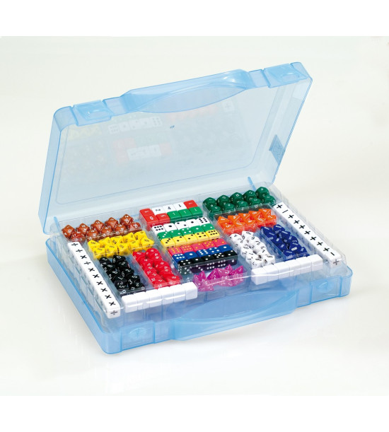 Plný kufrík farebných kociek na precvičovanie matematických operácií. Rôzne typy kociek ponúkajú veľa možností pre skupinovú prácu. Obsah: 162ks kociek s číslami, symbolmi, bodkami v plastovom kufríku.