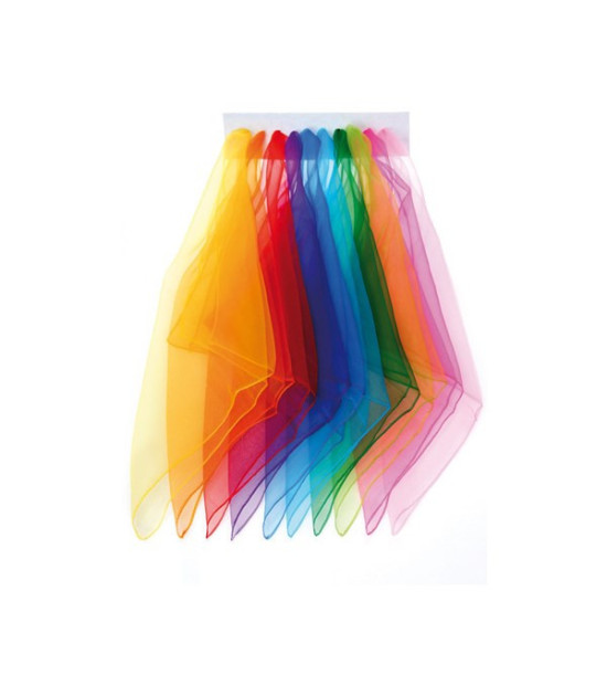 Veľké šifónové šatky na zvýraznenie pomalého pohybu. Ideálne pre vstup do fascinujúceho sveta žonglovania. Takmer bez tiaže, plávajúce vo vzduchu, rozvíňajú sa jemne a uľahčujú koordinované vyhadzovanie a chytanie. Ideálne pre štúdium sekvencií rytmického pohybu. Rôzne farby, veľkosť: 65x65 cm.