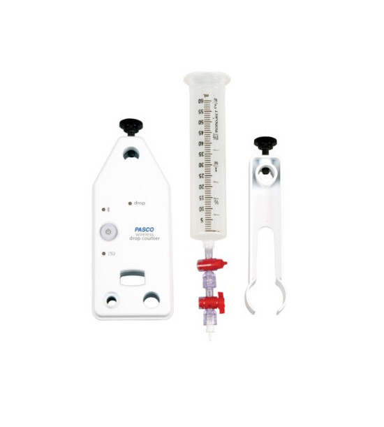 Bezdrôtové PASCO počítadlo kvapiek. - Meria rýchlosťou až 10 kvapiek za sekundu. - IR filter zaisťuje zistenie presného počtu kvapiek, pretože osvetlenie miestnosti nemôže ovplyvniť výsledky merania - Konštrukcia senzora umožňuje do roztoku upevniť až dve ďalšie sondy, čo zjednodušuje mnoho experimentov - Širšie preletové okienko (18 x 13 mm) umožňuje lepšiu detekciu pádu a ľahšiu prácu s byretami - Konštrukcia je odolná proti odstrekujúcej vode - Senzor sa pri každom zapnutí automaticky prekalibruje na maximálnu citlivosť. - Indikátor LED umožňuje jednoduché nastavenie a testovanie - Dobíjacie batérie s dlhou životnosťou (až 200 hodín na jedno nabitie) - Priložené vybavenie uľahčuje nastavenie kvapkového dávkovača, veľkosti kvapky a prietoku.Obsah dodávky: Senzor počítadla kvapiek, balenia obsahuje aj mikro miešačku (Micro Stir Bar), ktorá poslúži na získanie ešte lepších titračných dát. Mikro miešačka sa pripája ku koncu sondy pH alebo vodivosti a udržuje konštantný prietok roztoku okolo konca elektródy. Balenie obsahuje aj dávkovač Drop Dispenser. Telo senzora je navrhnuté tak, aby mohlo byť nasunuté na tyč stojana.