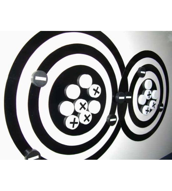 Učiteľský model atómu je magnetický demonštračný nástroj, ktorý umožňuje učiteľovi prezentovať abstraktné pojmy atómovej štruktúry, izotopov a iónov triede jednoduchým a konkrétnym spôsobom. Všetky časti tohto výrobku, okrem skladovacieho obalu, sú magnetické. Všetky časti sú od seba oddelené; používajte iba tie časti, ktoré sú potrebné pre danú tému. Obsahuje: 2 atómové jadrá, 8 elektrónových orbitálov (4 ku každému jadru), 20 protónov, 20 neutrónov, 20 elektrónov, obal, návod na použitie.