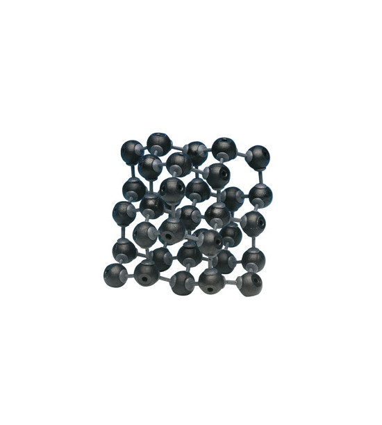V diamantovej mriežke je každý atóm uhlíku viazaný kovalentnou väzbou so 4 susednými atómami. Vysoké teploty topenia a varu diamantu tiež svedčia o stabilite týchto väzieb. Neobyčajná tvrdosť diamantu je podmienená pravidelným usporiadaným kovalentných väzieb. Diamant je tvorený výhradne zo štvorväzbových atómov uhlíka. Priemer atómu je 23mm; 30ks guličiek - atómov uhlíka, 40ks šedých spojovacích tyčiek.
