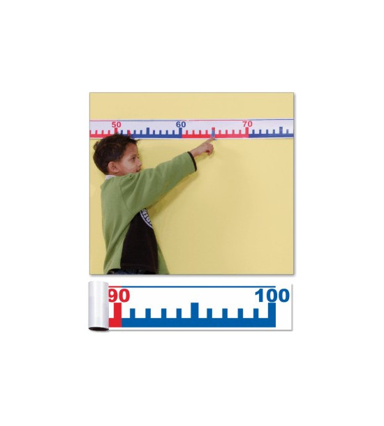 Táto veľká nástenná číselná os je vyrobená z tenkého odolného plastu a dodávaná je spolu s veľkými plastovými spinkami (10 červených a 10 modrých) na vyznačenie čísel. Dĺžka číselnej osi je 3m, šírka pásu je 9cm.