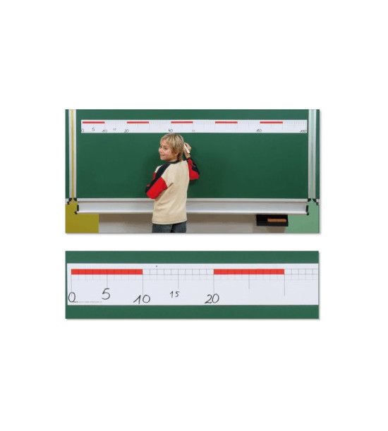 Magnetická číselná os na numeráciu čísel do 100 rozdelená na 10x10 dielov. Popisovateľná stierateľnými fixami, umývateľná. Jedna fixka priložená. Rozmery: 200cm x 12cm. Materiál: magnetická fólia.