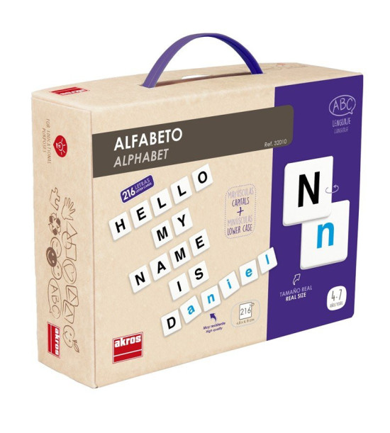 Praktický kufrík obsahuje 216 obojstranných odolných kartónových kartičiek s malými aj veľkými písmenami. Ide o univerzálny výrobok, ktorý je vhodný pre deti rôzneho veku. Môžete s ním vykonávať rôzne cvičenia od výučby hlások, cez tvorenie slov alebo viet. Vhodné aj na výučbu cudzieho jazyka. Rozmer kartičiek: 4.8 x 4.8 cm.