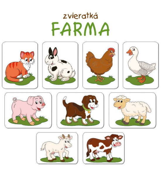 Poznávajte, pomenujte, rozlišujte domáce zvieratká. Rozprávajte si o nich rozprávky,hádajte hádanky, spievajte pesničky. Využitie pomôcky je všestranné vo všetkých oblastiach rozumovej výchovy pri práci v škôlke či škole. Obsah: 12ks magnetické ilustrované obrázky / 18 x 13,5cm / pevný kartón 2mm Kartónová krabica. Slovenský jazyk (S)V ponuke nájdete aj: - slovenský jazyk / SJ (s) - český jazyk / Čj (c) - nemecký jazyk / NJ (n) - francúzsky jazyk / FJ (f) - maďarský jazyk / MJ (m) - ruský jazyk / RJ (r)