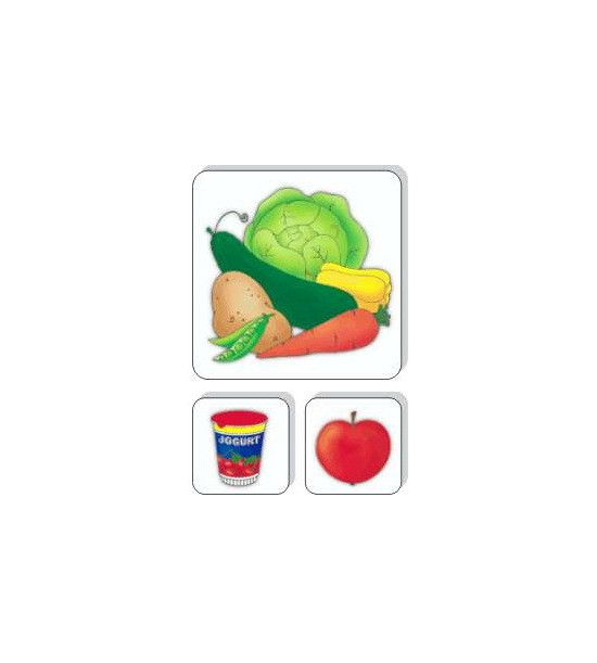 Pomôcka pomáha vytvoriť pozitívny vzťah k tým druhom potravín, ktoré deťom prinášajú úžitok a rozlišovať tie, ktoré zdraviu škodia.Obsah: 16ks magnetické ilustrované obrázky / 9 x 9cm / pevný kartón 2mm 2ks magnetické ilustrované obrázky / 18 x 13,5cm / pevný kartón 2mm 6ks magnetické ilustrované obrázky / 18 x 18cm / pevný kartón 2mm Kartónová krabica.