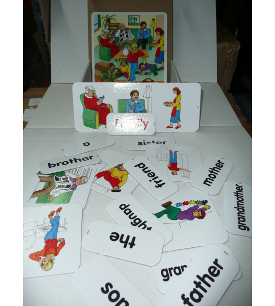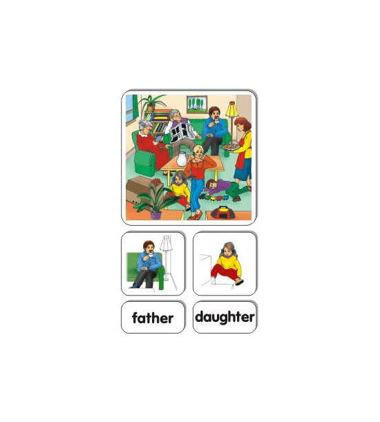 Súbor obrázkov a textových kartičiek umožňuje nácvik, precvičovanie a upevňovanie slovnej zásoby, tvorenie viet a dialógov k téme Rodina - AJ. Obsah: 1ks magnetické ilustrované obrázky / 18 x 18cm / pevný kartón 2mm 8ks magnetické ilustrované obrázky / 9 x 9cm / pevný kartón 2mm 10ks magnetické textové kartičky / 9 x 4,5cm / pevný kartón 2mm Kartónová krabica.