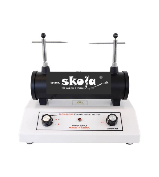 Ruhmkorffov induktor. Induktor s meniteľnou polaritou. Vhodný na demonštráciu vysokonapäťových iskrových výbojov a možno ho použiť aj ako zdroj napájania pre plynové výbojky a katódové trubice. Napätie vysokonapäťových impulzov je plynule nastaviteľné.Výkon do 120 W.Napájanie: 230V; 2,8 A.Vysokonapäťový výstup: 10 kV - 100 kV, 2mA.