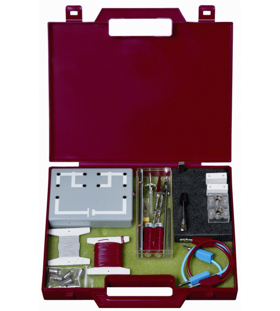 Špeciálne prvky zapojené do zástrčky sú základnými časťami Minisúpravy "základy elektriny". Ostatné súčasti: batérie, lampy a držiaky lámp, drôty, zásuvkové vedenie, krokodílie svorky, magnetické ihly, držiak. Rozmery: 27 x 21 x 5cm. Prehľad pokusov: nastavenie elektrického obvodu, elektrický obvod so spínačmi, vodič a nevodič, vedenie v kvapalinách, elektrický odpor, tepelný efekt v elektrickom prúde, magnetický efekt v elektrickom prúde, elektromagnet, sériové spojenie elektrického obvodu, paralelné spojenie elektrického obvodu, chemický efekt elektrického prúdu. Obsahuje materiál na prácu jednej skupiny.