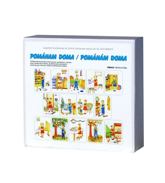 Súbor magnetických obrázkov na tému pomoc, spolupráca a domáce práce. Rozvíja slovnú zásobu, používanie slov označujúcich predmety, javy a činnosti, s ktorými sa dieťa bežne stretáva. Obsah: 14ks magnetické ilustrované obrázky / 18 x 13,5cm / pevný kartón 2mm Kartónová krabica.