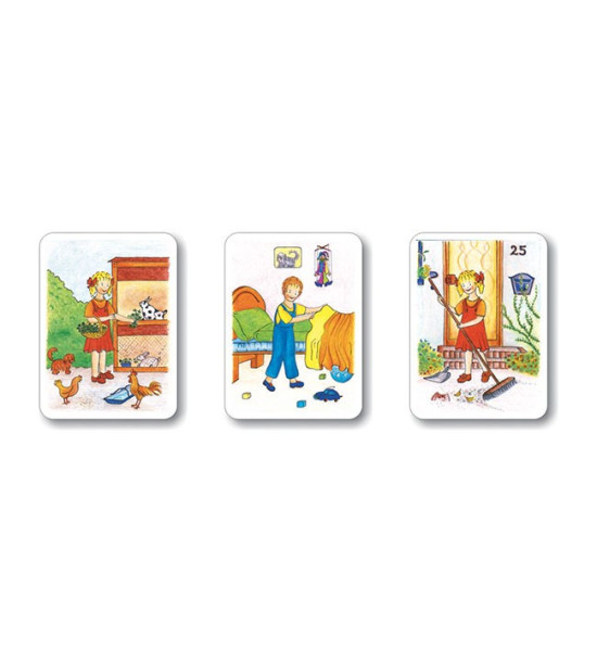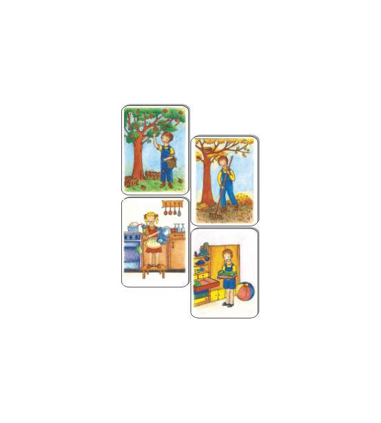 Súbor magnetických obrázkov na tému pomoc, spolupráca a domáce práce. Rozvíja slovnú zásobu, používanie slov označujúcich predmety, javy a činnosti, s ktorými sa dieťa bežne stretáva.