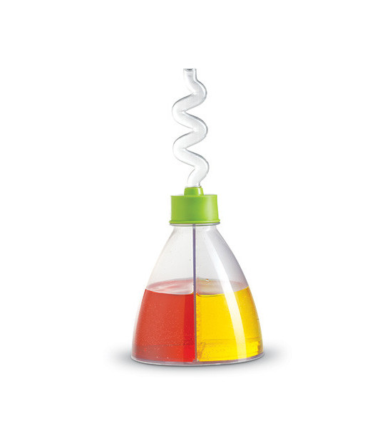 Nádoba na miešanie farieb pre najmenších výskumníkov. Banka má dve komory pre naplnenie dvomi tekutinami rôznych farieb. Stačí naplniť oddelené komory nádobky vodou dvoch rôznych farieb (použite potravinárske farby/nie sú súčasťou balenia), otočiť a je to. Cez zvlnenú slamku potečie voda novej, zmiešanej farby. Dopredaj.