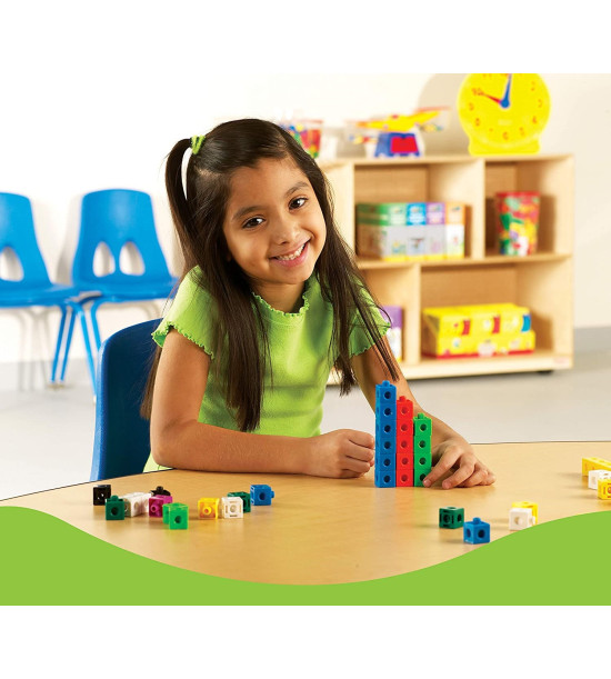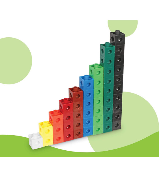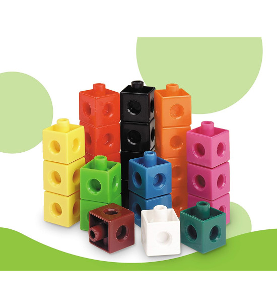 Plastové kocky vhodné pre 1. stupeň ZŠ a pre všetky metódy výučby na stavby z kociek, priestorovú predstavivosť, rozpoznávanie farieb, triedenie, porovnávanie, počítanie či vytváranie logických radov a mnohé ďalšie možnosti využitia. Sada obsahuje 100 ks plastových kociek v desiatich jasných farbách s dĺžkou hrany 2 cm. Na jednej strane kocky je výstupok a na ostatných stranách dierky, do ktorých výstupok pasuje. Kocky sa vďaka tomu môžu jednoducho spájať do stĺpčekov a rôznych ďalších tvarov.