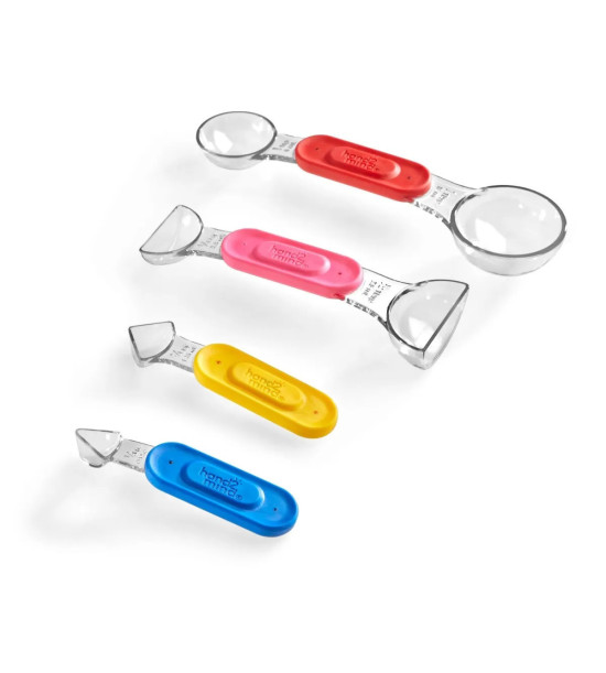 Naučte sa správne merať, preskúmajte kapacitu, objem, čiastkové vzťahy a pochopte zlomky pomocou farebný lyžičkpových odmeriek značky Learning Resources. Jednotlivé lyžice do seba zapadajú, čím sú pohodlne skladovateľné. Farebne odlíšené odmerky sú bezpečné pre potraviny, využívať ich môžete prostredníctvom rôznorodých praktických činností. Majú pohodlné a ľahko uchopiteľné rukoväte a sú vhodné do umývačky riadu. Na rukoväti každej lyžičky je magnet, ktorý ich drží pohromade. Odmerky majú jedinečný tvar, ktorý predstavuje zlomky. Sada 4 odmeriek obsahuje zlomky celku, polovice, tretiny a štvrtiny.Rozmer najdlhšej lyžice: 15,5 cm. Vhodné pre deti od 3 rokov.
