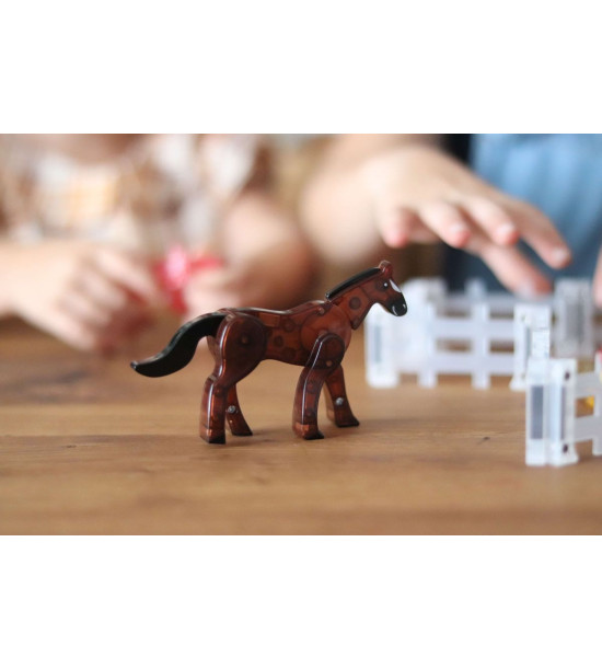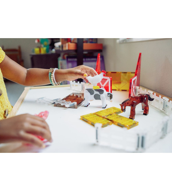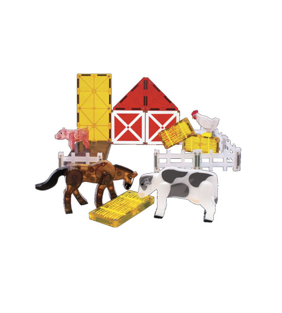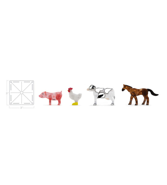 Magna-Tiles je zástancom zmysluplnej hry, to znamená zábavnej a pútavej, no zároveň založenej na rozvíjaní detských zručností. Táto stavebnica podporuje rozvoj koordinácie ruka-oko, jemnej motoriky a logického myslenia prostredníctvom skúmania príčin a následkov. Bezpečnosť a špičková kvalita sú zaistené použitím potravinárskeho, netoxického plastu MABS bez BPA, ftalátov a latexu. Pevná konštrukcia dielikov zabraňuje praskaniu a udržiava magnety bezpečne na svojom mieste. Sada obsahuje 25 magnetických dielikov: 4x figúrka - sliepka, kôň, krava a prasa, 4x štvorec, 3x obdĺžnik, 2x, veľký obdĺžnik, 2x pravouhlý trojuholník, 10x plot. Rozmery: 32cm X 6.35cm X 30.48cm