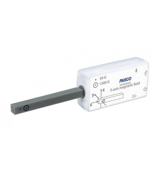 Bezdrôtový PASCO senzor magnetického poľa. Súčasné meranie magnetického poľa v troch osiach pomocou tohto dvojrozsahového bezdrôtového senzora, ktorý je dostatočne citlivý aj na meranie magnetického poľa Zeme. Zmerajte tri zložky magnetického poľa a ich výslednicu alebo, ak je to žiaduce, zmerajte pole pozdĺž jednej osi. Senzor meria zložky X, Y a Z hustoty magnetického toku v jednotkách Tesla, millitesla a Gauss. Usporiadanie a orientácia smerových zložiek X, Y a Z je uvedené na hornej strane senzora.Tento senzor je ideálny na skúmanie statických magnetikých polí.Obsah balenia: Senzor, tyčka držiaka, USB kábel. Nízky rozsah: ± 50 G (49,1 G). Vysoký rozsah: ± 1300 G (130mT). Rozlíšenie nízkeho rozsahu: ± 0,01 G (rozsah 50 G). Rozlíšenie vysokého rozsahu: ± 2 G (rozsah 1300 G). Max. Vzorkovacia frekvencia: 100 Hz. Meranie: Magnetická sila poľa (3 osi a výsledná). Batéria: Dobíjacia Lítium-Polymérová. Meranie do vnútornej pamäte: Áno. Pripojenie: USB alebo Bluetooth® Smart (Bluetooth 4.0). Maximálny dosah: 30 m (bez prekážok).V režime vzdialeného zberu dát môžete do internej pamäte zaznamenávať dáta celé dni, týždne a dokonca mesiace, a to bez nutnosti pripojenia k PC či tabletu. Na konci experimentu stačí spustiť PASCO softvér a namerané hodnoty zo snímača stiahnuť. Upozornenie: zariadenia so systémom Windows, Chromebook a starší Macintosh nemajú natívnu podporu Bluetooth® 4.0 a vyžadujú použitie adaptéra PS-3500. Všetky súčasné modely Mac, iPad, iPhone, Android tablety alebo telefóny podporujú priame pripojenie k PASCO Bluetooth senzorom a nevyžadujú adaptér.
