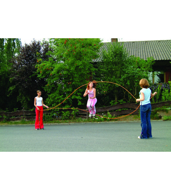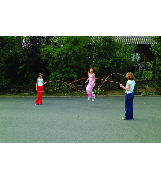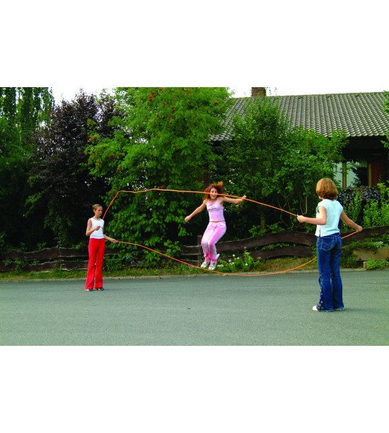 Rýchlo sa točiace plastové laná v neónovo oranžovej farbe s čiernymi plastovými rúčkami. Dve laná sa rytmicky točia v opačnom smere tak, že osoba, ktorá skáče musí reagovať na dvojitú rýchlosť naraz. Cvičenie na zlepšenie koordinačných schopností. Vhodné na fitness. Dĺžka 6 m. Dodávané v páre.