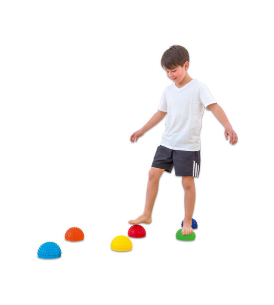 Cenovo výhodná sada 6ks ježkov na udržanie rovnováhy, s priemerom 16cm. Na precvičovanie rovnováhy, motorické rozvojové hry alebo masáže. Vyrobené z obzvlášť odolného PVC s nosnosťou 80 kg. Kombinujte efektívny balančný tréning s príjemným masážnym efektom. Pomocou ihlového ventilu môžete ľahko meniť tlak vzduchu a meniť tak náročnosť tréningu. Otočením pologúľ získate ďalšie variácie Vašej balančnej dráhy.