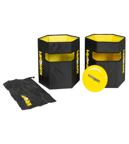 Kanjam je nekontaktná športová hra s lietajúcim tanierom a dvoma plastovými košmi. Koše sú od seba vzdialené 15 metrov. Proti sebe hrajú dva dvojčlenné tímy. Cieľom je hodiť lietajúci tanier - frisbee a trafiť súperov kôš, ale ho umiestniť priamo do koša. Hráč hádže na kôš, pri ktorom je pripravený jeho spoluhráč. Ten môže frisbee tečovať a tým ho umiestniť do koša, resp. udrieť do koša. Vyhráva tím, ktorý ako prvý dosiahne 21 bodov. Hra je ideálna na lúku, pláž, do parku alebo na školské ihrisko, ale i do telocvične. Hra je aktívna a pútavá, podporuje fyzickú aktivitu a tímovú prácu bez fyzického kontaktu. Trénuje presnosť hádzania, koordináciu ruka-oko a predvídanie pohybu disku pri hádzaní. Obsah: 2 skladacie bránky (koše), 1 vysokokvalitný lietajúci disk, 1 taška na pohodlné prenášanie.